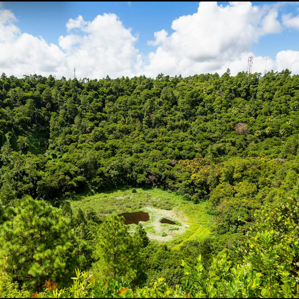 Ihr Erlebnis beginnt in Trou aux Cerfs, einem erloschenen Vulkan, der sich etwa 800 Meter über dem Meeresspiegel befindet und der vor etwa 2 Millionen Jahren entstand. Er ist etwa 1 km breit und 300 Meter tief. Sein Krater ist mit Kiefern bewachsen und ein beliebtes Ziel für Wanderungen. Von oben bietet er eine atemberaubende Aussicht auf die Umgebung, einschließlich der Stadt Curepepe, des Vacoas-Beckens und des Indischen Ozeans.